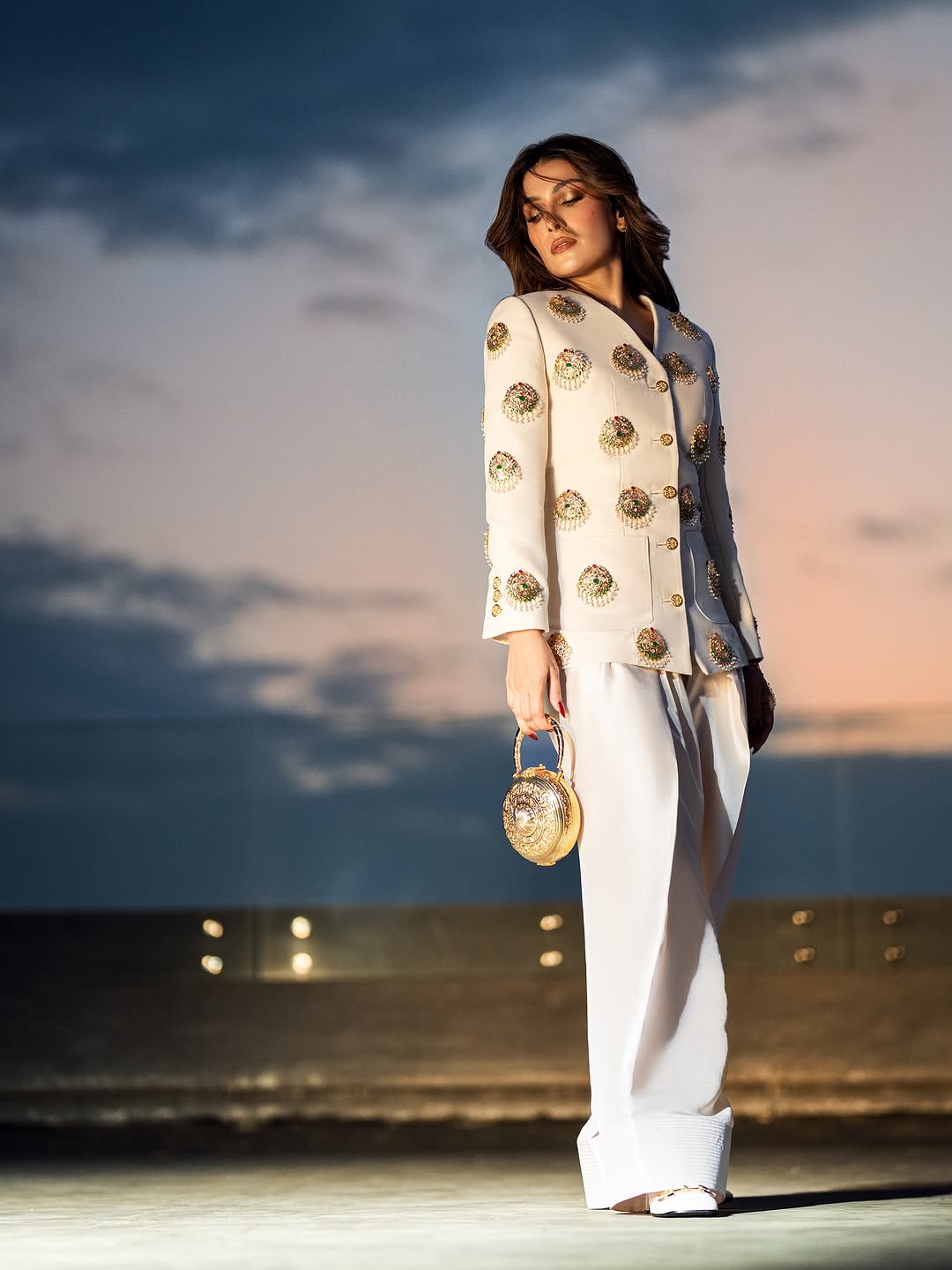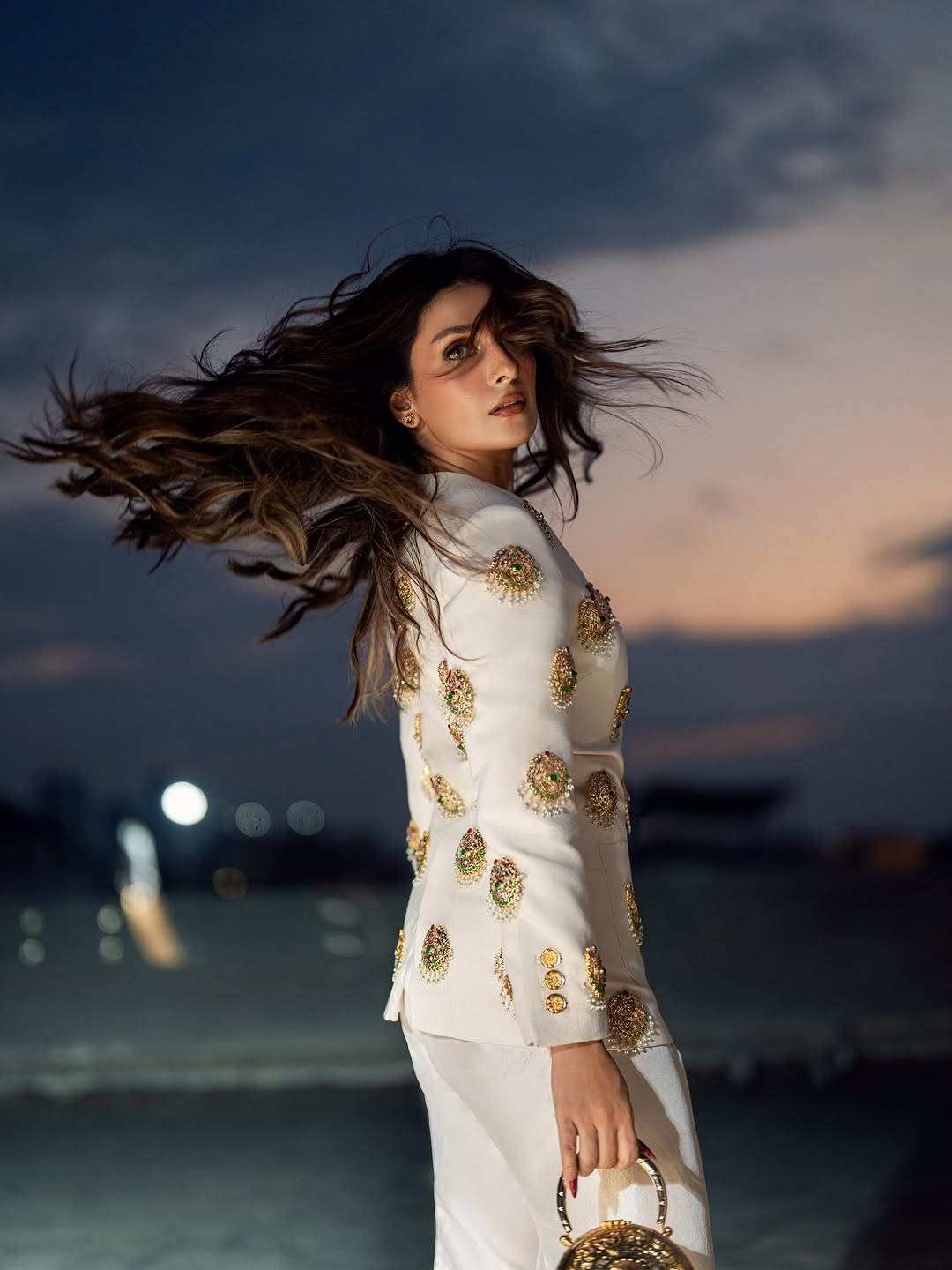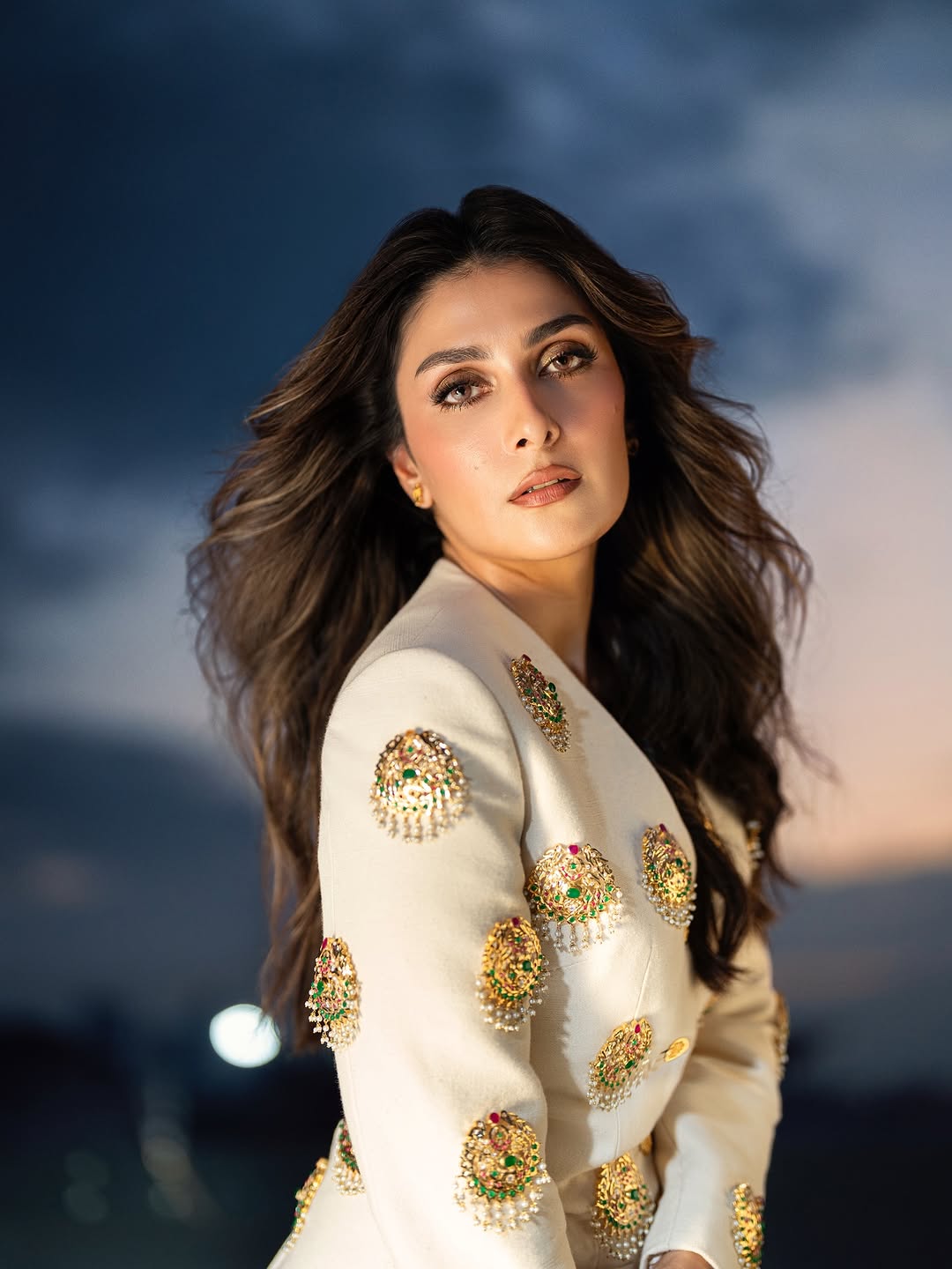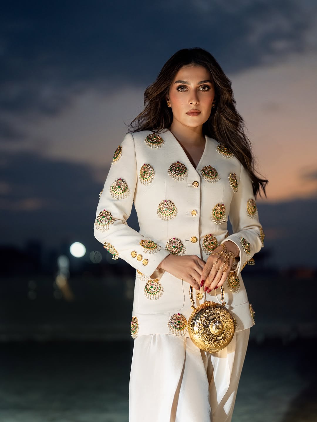 This sophisticated ensemble features a tailored jacket crafted from exquisite Russian Raw Silk fabric, showcasing impeccable craftsmanship and attention to detail. The jacket is elevated with a custom-made hand jewel, thoughtfully placed on the base to add a touch of refined elegance. Paired with a raw silk shalwar, known for its luxurious texture and timeless appeal, this outfit effortlessly combines modern tailoring with traditional charm, making it an exceptional choice for distinguished occasions.