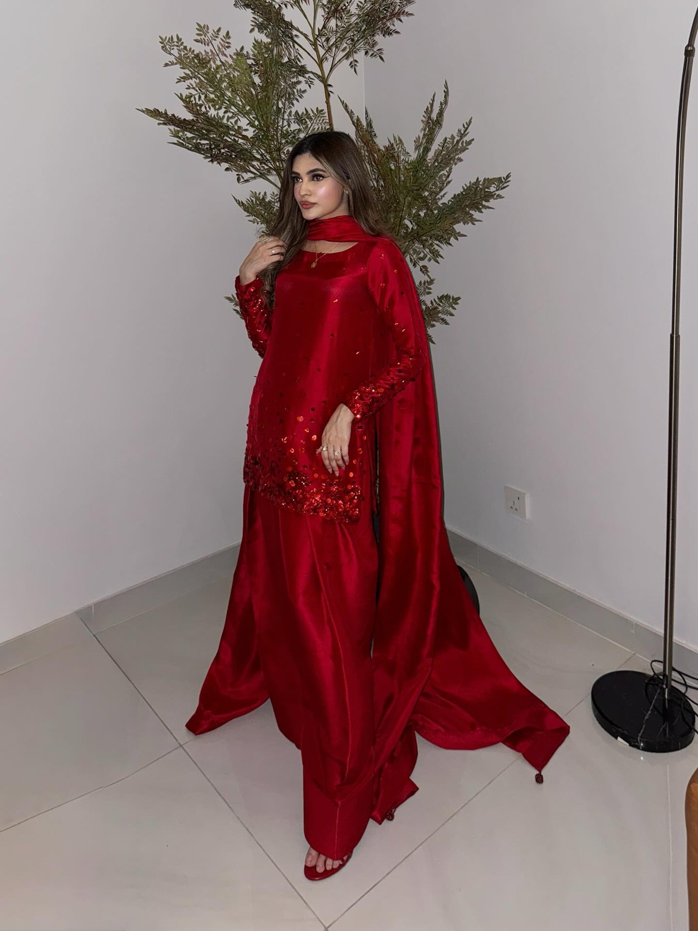 - Soft silk dupatta fully handmade work on it & attached tussles on corner.