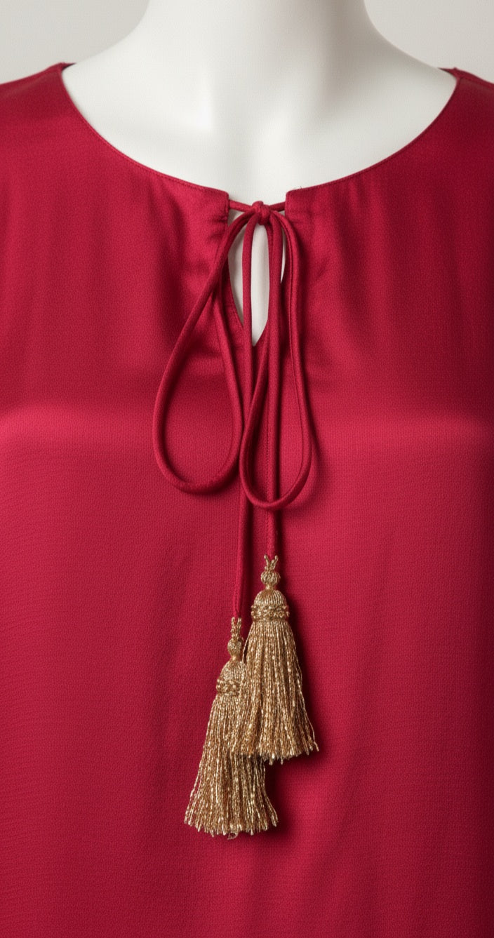 - Silk dress front with tassels.