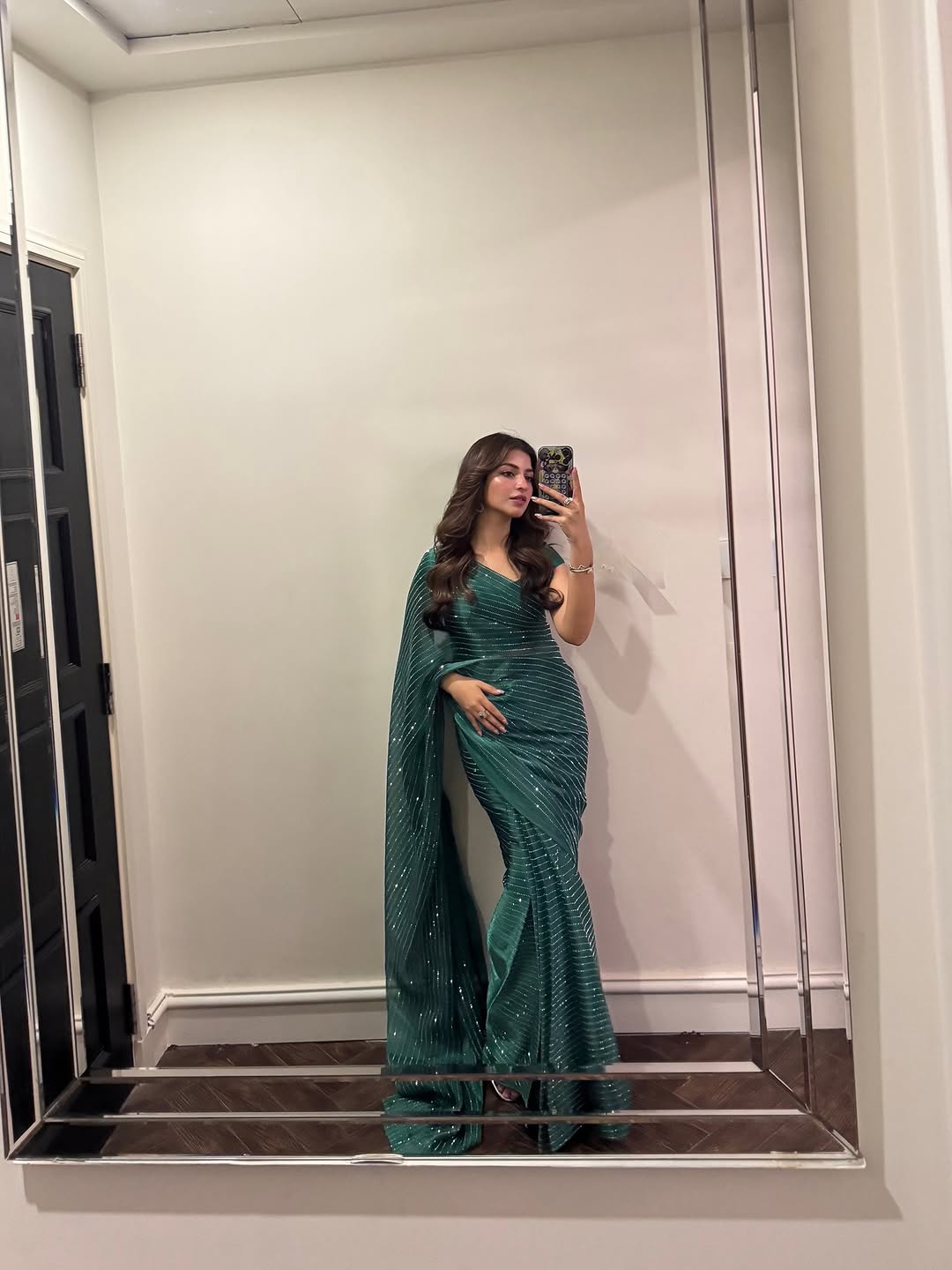 3.7-Yard Saree - A flowy, beautifully embellished saree with delicate shimmer detailing, perfect for weddings, parties, and festive occasions.