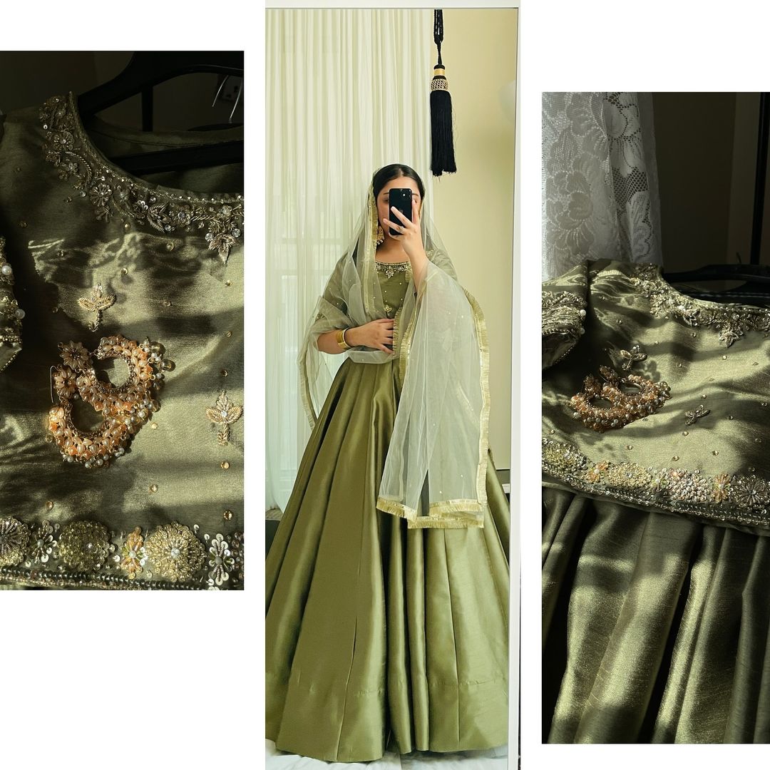 Expertly crafted from premium quality soft silk and adorned with intricate handcrafted designs, FULKARI is the epitome of elegance and luxury. Perfect for any special occasion, this choli and lehenga set offers a timeless and sophisticated look that is sure to make you stand out. Elevate your style and make a statement with FULKARI.