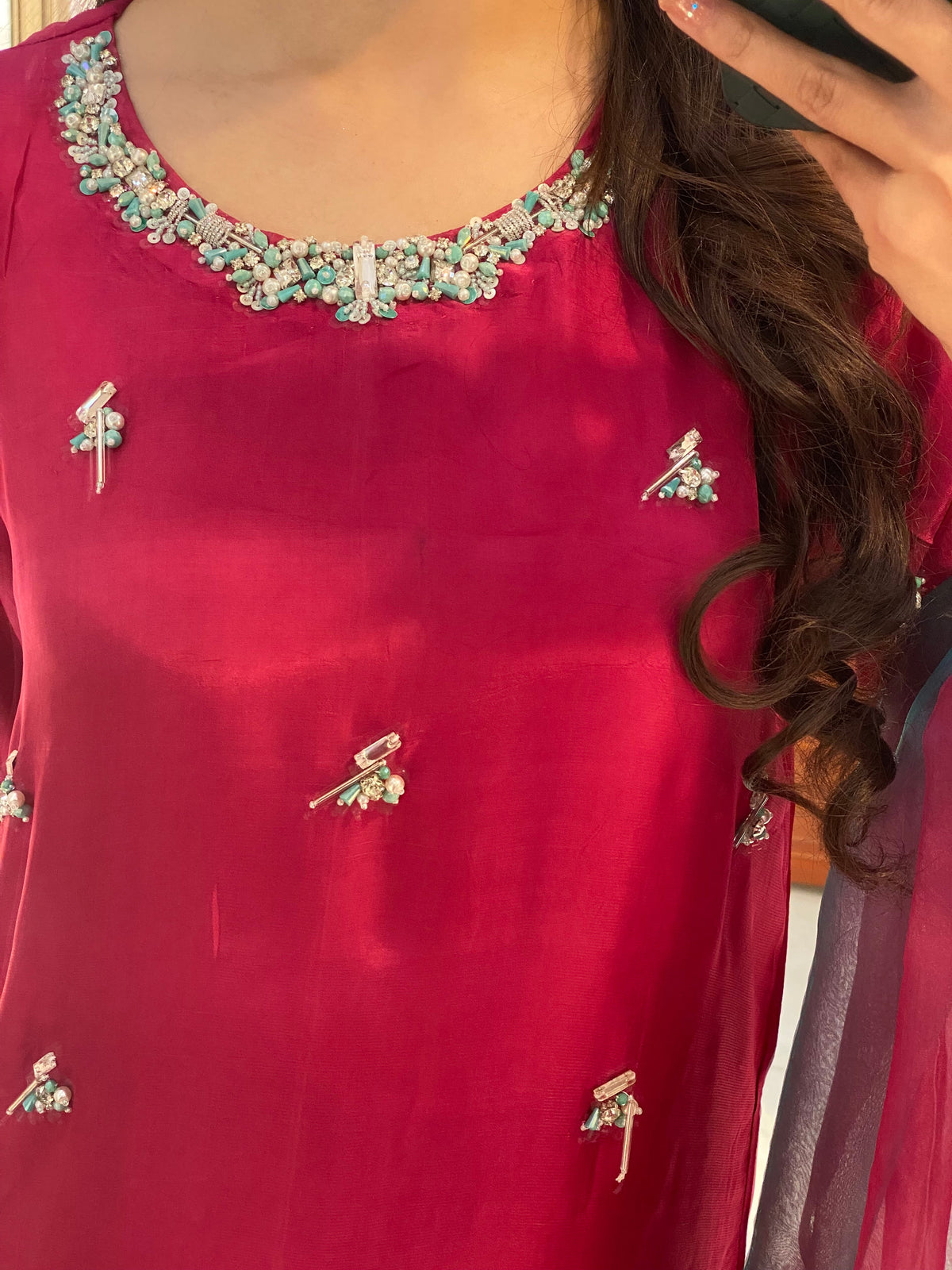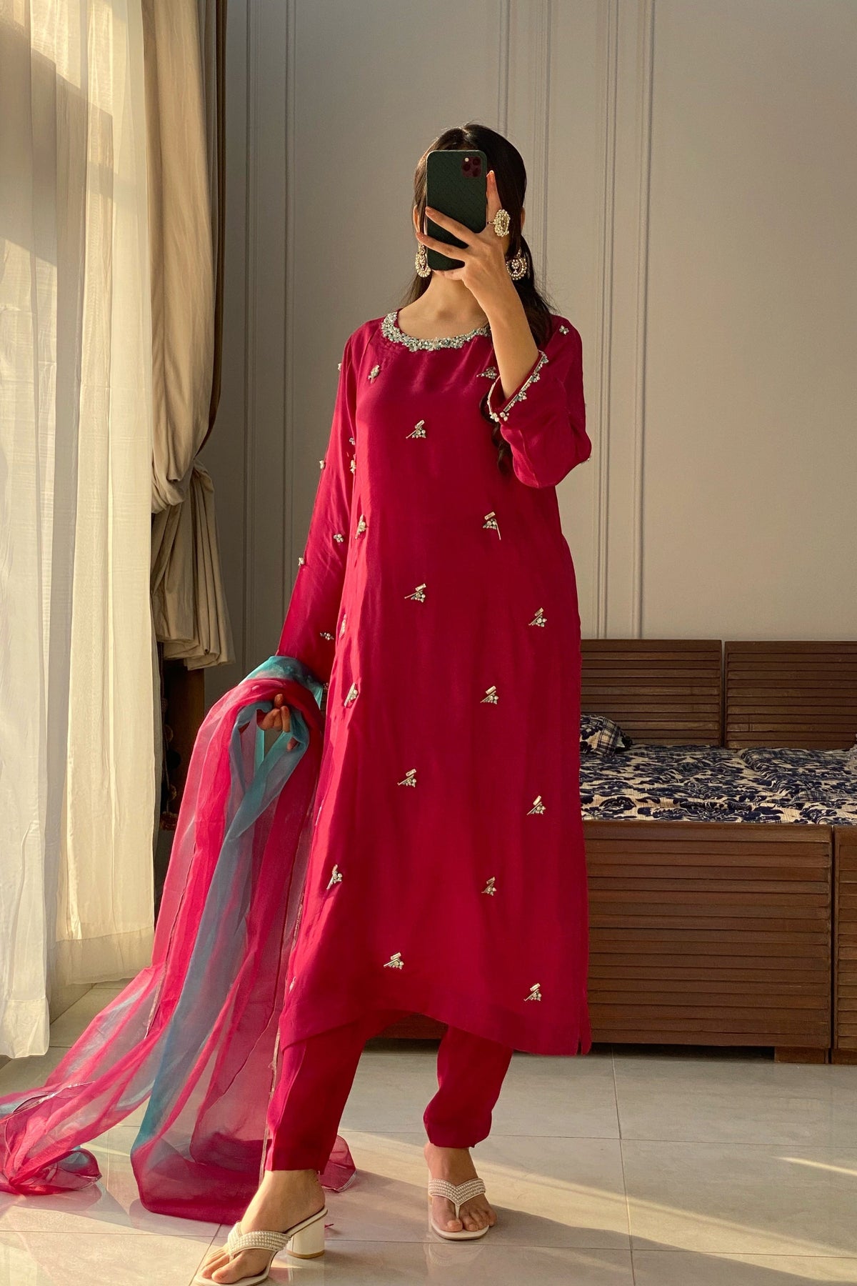 Dry clean recommended . Iron the clothes at moderate temperatures . Do not use any type of bleach or stain removing chemicals . Actual color may slightly vary from the image shown.